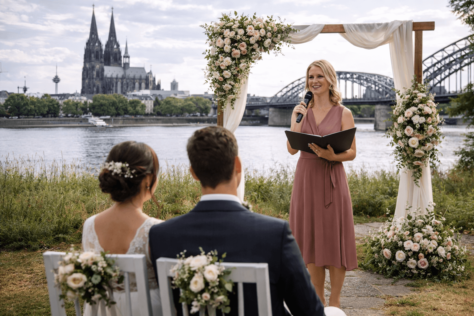 Eine freie Trauung passt zu Köln, weil ihr euren Tag so gestalten könnt, wie er zu euch passt: emotional, humorvoll, elegant oder ganz reduziert. Köln ist stark, wenn die Zeremonie „leicht“ wirkt – aber in Wahrheit sauber geplant ist: gute Dramaturgie, gute Tonlösung (gerade draußen am Rhein) und ein Ablauf, der eure Gäste mitnimmt.