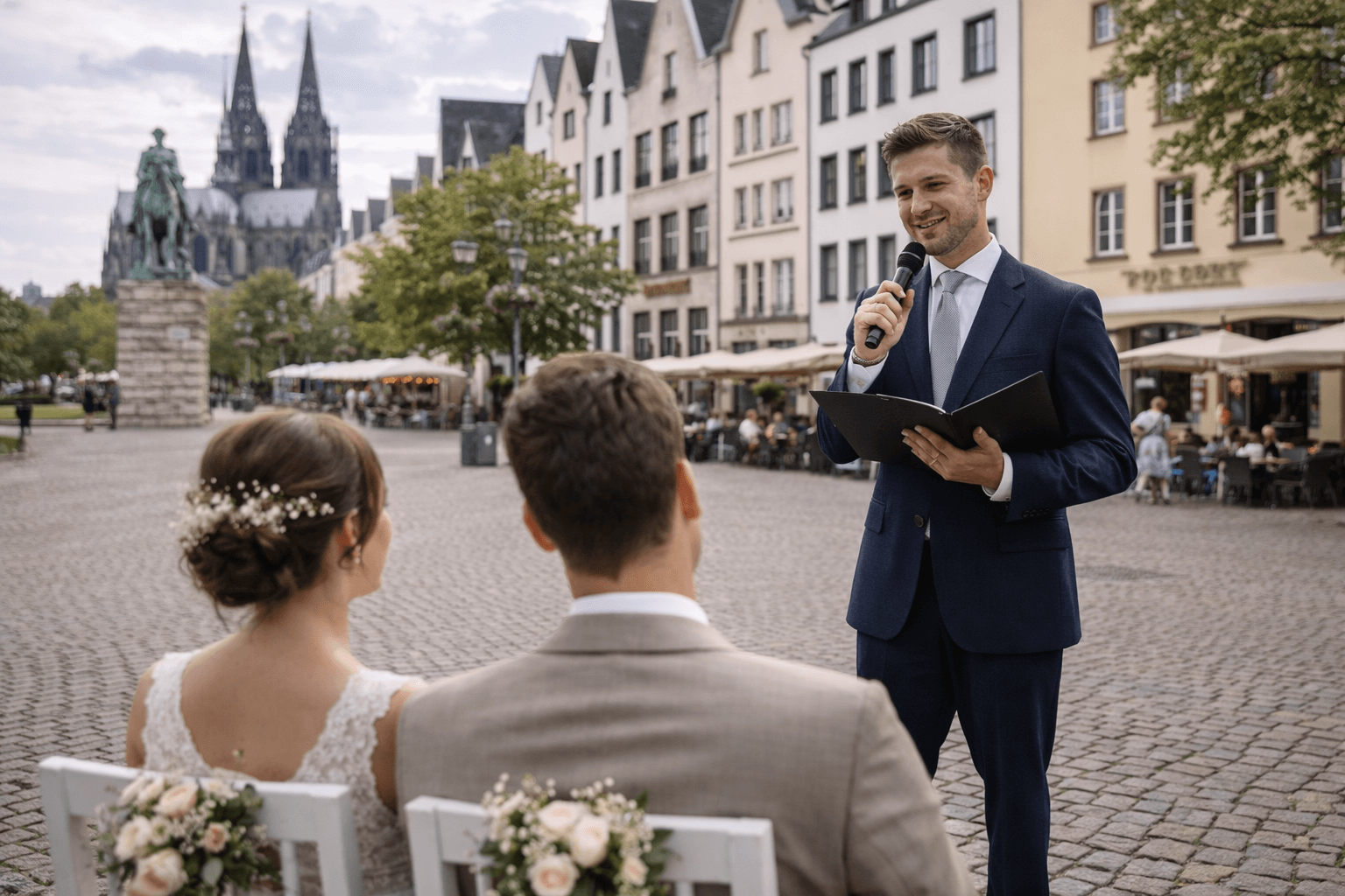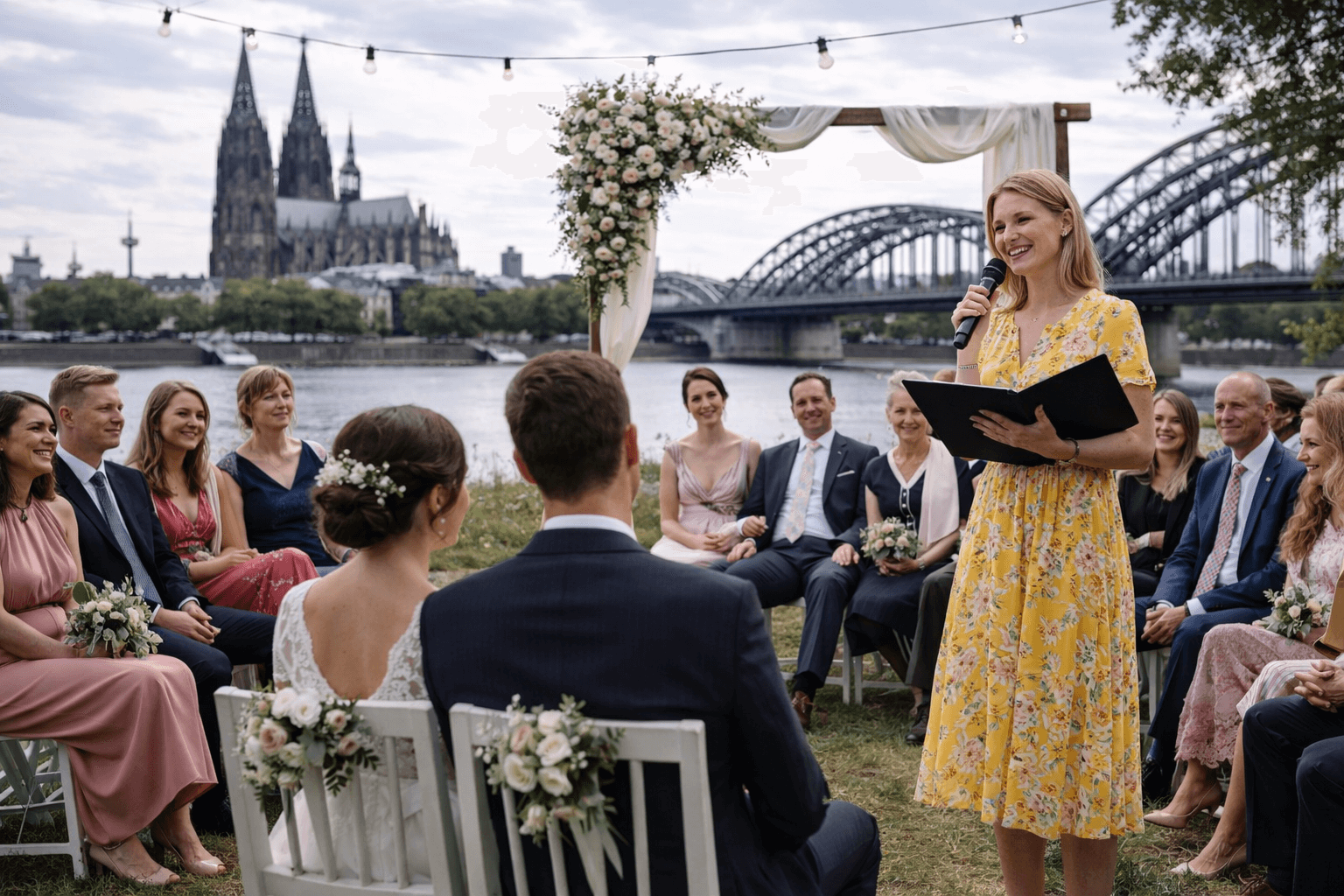 Köln liebt Herzlichkeit – und viele Paare möchten Beiträge von Freunden oder Familie. Das funktioniert sehr gut, wenn es strukturiert eingebunden ist: kurz, passend, zur richtigen Zeit. Ein Trauredner sorgt dafür, dass die Zeremonie nicht zerfasert, sondern rund bleibt.